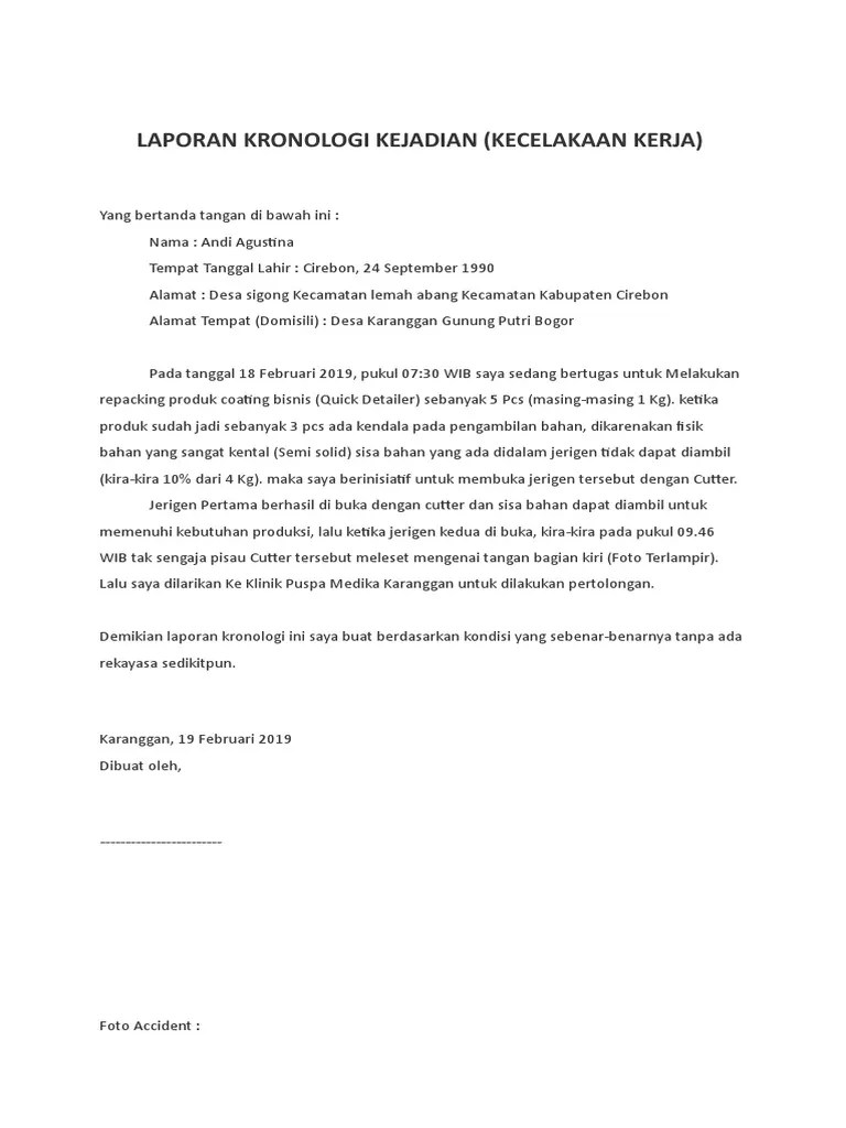 Laporan Contoh Surat Kronologi - Surat Laporan Keterlambatan Pekerjaan - Contoh kronologis kejadian kecelakaan di tempat kerja .